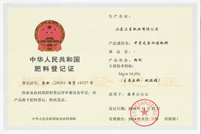 - 肥料登記證書